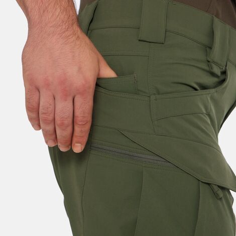 Конструкция брюк EIGER позволяет носить с собой все необходимое снаряжение, а анатомический крой не стесняет движений. Эластичный пояс и застежка на липучке позволяют регулировать размер. Большие петли для ремня позволяют использовать широкие ремни (шириной до 50 мм). Расположение карманов позволяет распределить нагрузку вблизи центра тяжести и вокруг бедер и талии. Края карманов усилены, чтобы выдерживать постоянное скольжение зажимов для фонарей и ножей. Два передних кармана на липучках достаточно велики, чтобы вместить смартфон или запасной магазин для винтовки (AK / AR). В набедренные карманы на молнии можно положить бумажник или небольшую сумку. Внутренние карманы на коленях позволяют использовать низкопрофильные защитные накладки из неопрена.