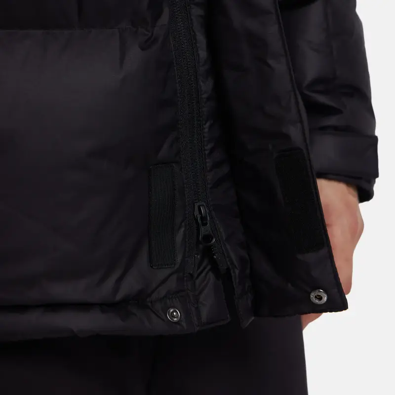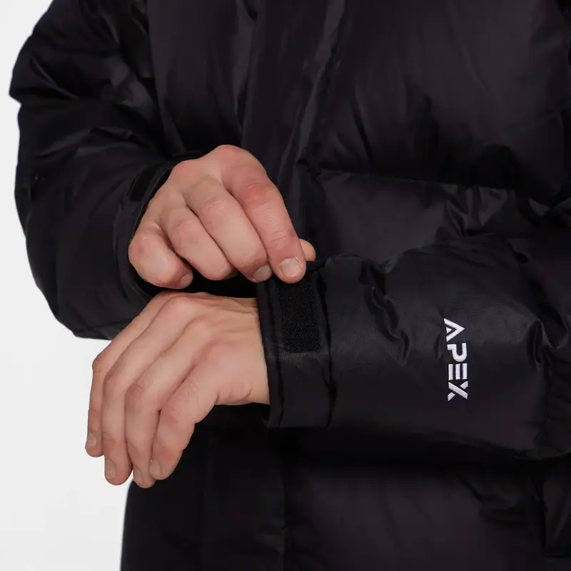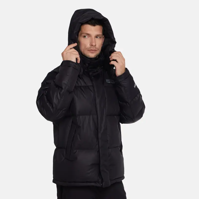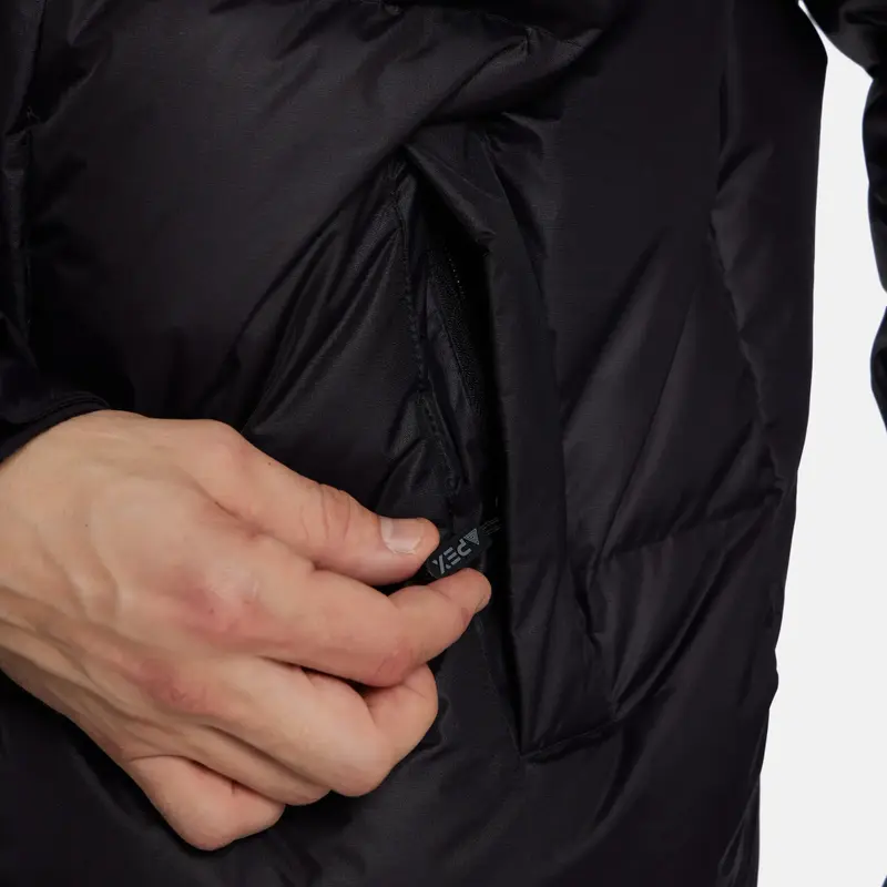 Утеплитель из 90% гусиного пуха по технологии Goose Down обеспечивает максимальную теплоизоляцию при лёгком весе — от 318 до 385 г в зависимости от размера. Подкладка и капюшон из мягкого полиэстера создают дополнительный комфорт и защиту от ветра.