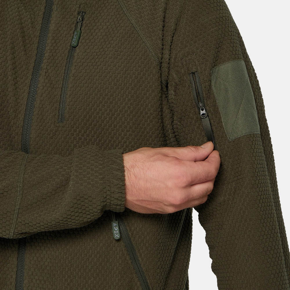 Флисовая кофта SANFORD идеальный спутник для охоты, рыбалки, походов, городских приключений и использования в тактических задачах. Созданная из высокотехнологичного полиэстера, она сочетает максимальное тепло, легкость и износостойкость, сохраняя свободу движений даже в экстремальных условиях. Сетчатая подкладка обеспечивает дополнительный комфорт кожи.