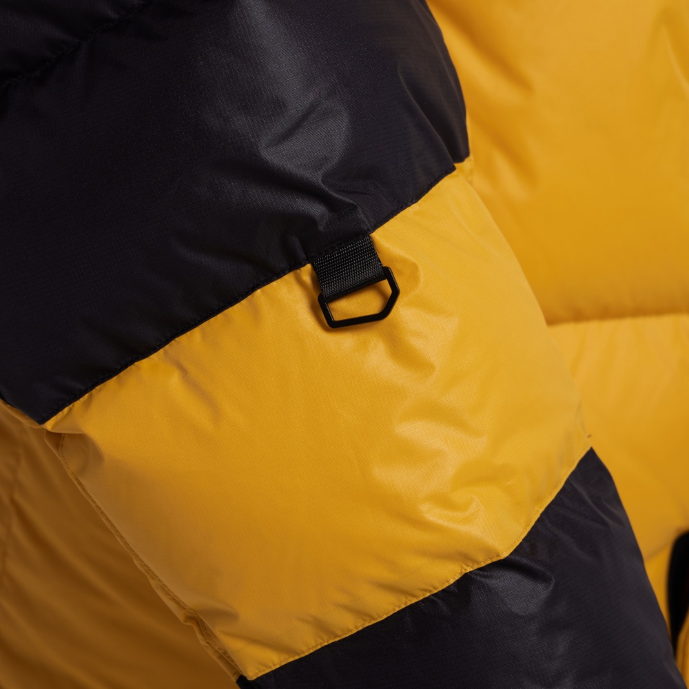 Утеплитель из 90% гусиного пуха по технологии Goose Down обеспечивает максимальную теплоизоляцию при лёгком весе — от 318 до 385 г в зависимости от размера. Подкладка и капюшон из мягкого полиэстера создают дополнительный комфорт и защиту от ветра.